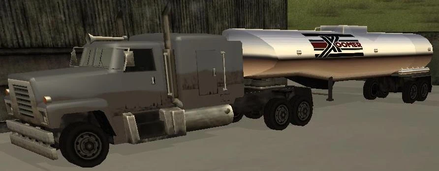 The Tanker in GTA London 1969 is designed as a generic British lorry of the 1960s. It bears a logo that resembles the former badge of British Petroleum . In GTA San Andreas, the Tanker appeared with a semi-cab design. It is one of the more popular of the three trucks in San Andreas, being encountered more than any of the others (the Roadtrain.